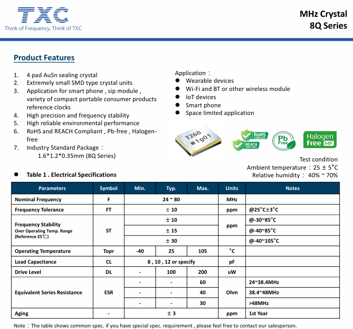 當(dāng)智能手機(jī)流暢運(yùn)行、可穿戴設(shè)備精準(zhǔn)監(jiān)測、物聯(lián)網(wǎng)設(shè)備互聯(lián)互通時,很少有人會留意那顆藏于機(jī)身深處的“時間心臟”臺灣晶技晶振.臺灣TXC晶技推出的8Q26000008晶振,以1.6*1.2*0.35mm的方寸之軀,承載著高精度頻率控制的核心使命,堪稱小型化科技浪潮中的匠心典范.