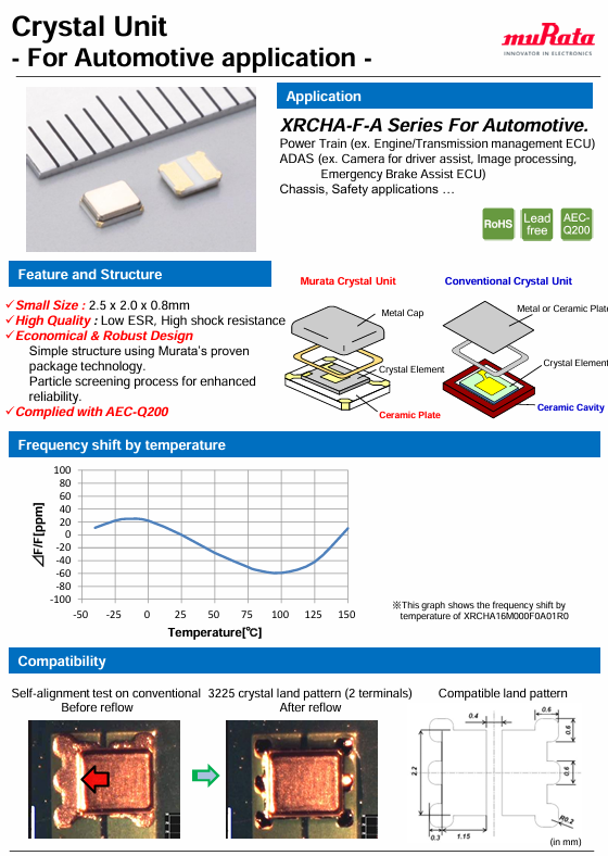 當(dāng)汽車從機(jī)械時(shí)代邁向智能時(shí)代,一枚看似微小的晶體單元,正成為驅(qū)動汽車電子革新的關(guān)鍵力量.日本村田諧振器XRCHA16M000F0A12R0石英晶振,以2.5x2.0x0.8毫米的方寸之軀,承載著汽車電子小型化與高精度的核心需求,彰顯著科技匠心的非凡力量.
