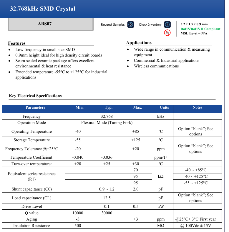 更多>>ABS07-32.768KHZ-T艾博康A(chǔ)BRACON進(jìn)口晶振3215 32.768K 12.5PF